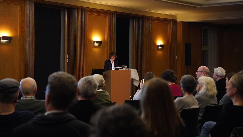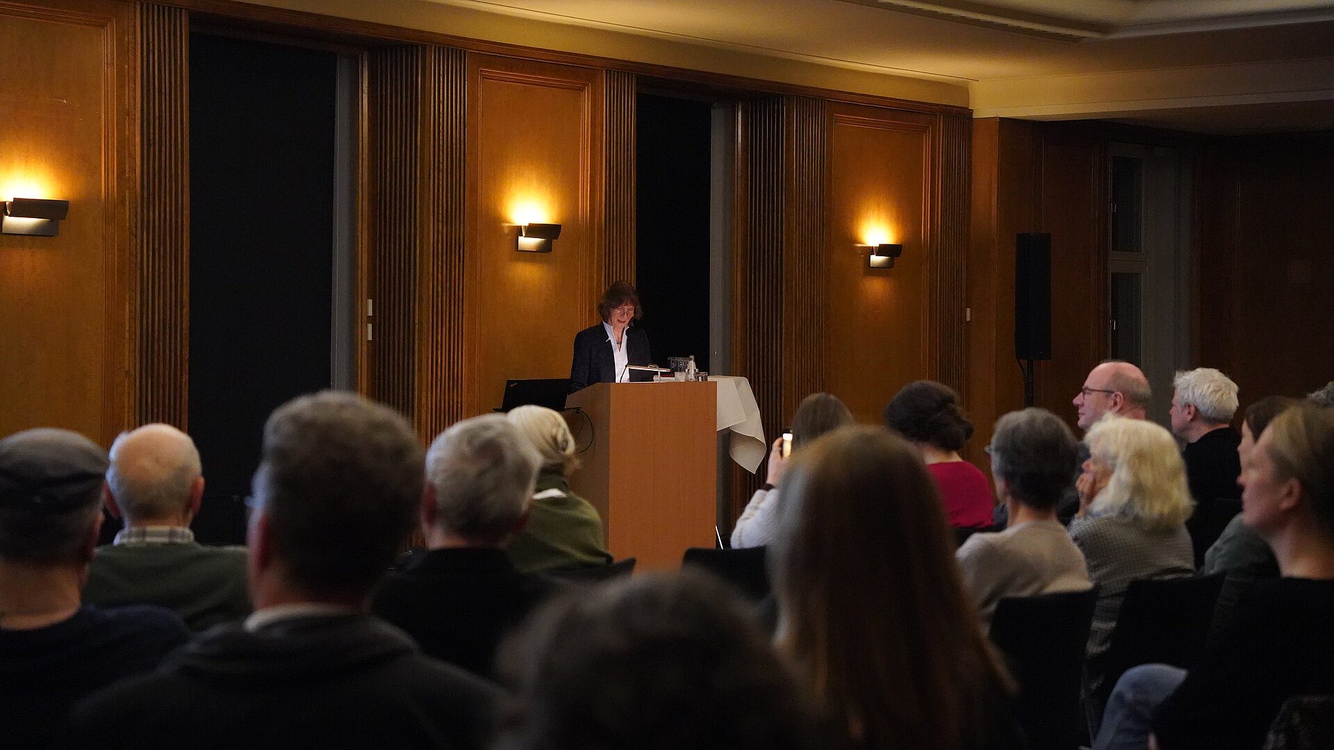 In ihrem Vortrag am 23. April 2025 stellte Julia Fischer (Vizepräsidentin der Akademie) im Einstein-Saal des Akademiegebäudes am Gendarmenmarkt verschiedene Formen des Konfliktmanagements bei Affen vor. Von besonderer Bedeutung sind „Versöhnungen“ – der Austausch positiver sozialer Signale, kurzer Berührungen, Umarmungen und soziale Fellpflege, die direkt nach einem Konflikt auftreten. Die Konfliktlösung bei Affen zielt in der Regel darauf ab, Beziehungen zwischen Tieren zu reparieren, da diese einen direkten und indirekten Überlebenswert haben. Die große Variation des Konfliktmanagements bei verschiedenen Arten zeigt aber auch, wie sehr das Verhalten nach Konflikten durch die Gesellschaftsform geprägt wird.